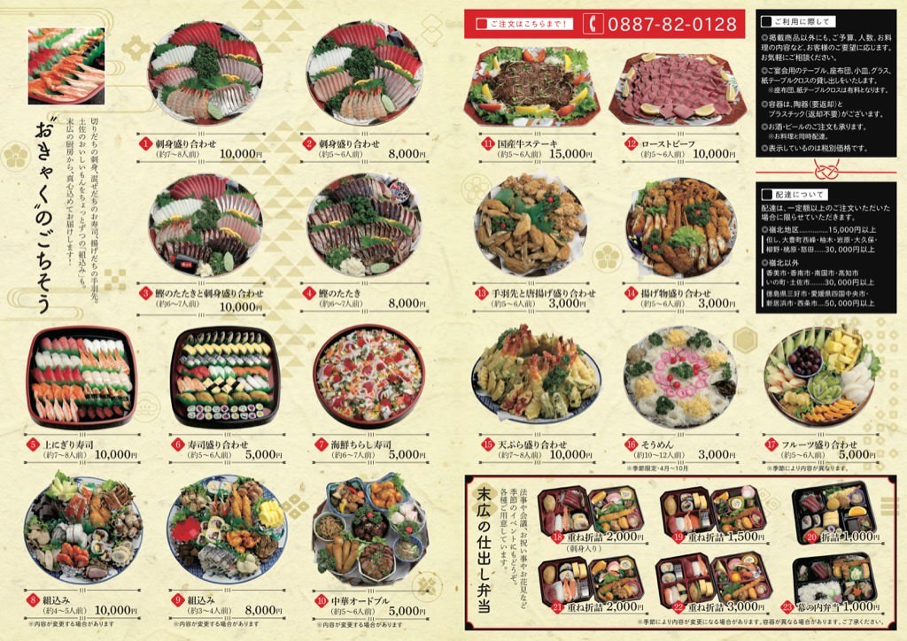 すえひろ屋の皿鉢は、見た目に少し豪華さに欠けるかも知れませんが、地元でとれたものを本当に一つ一つ手間ひまをかけつくった物を一つの皿に組み込んでいます。